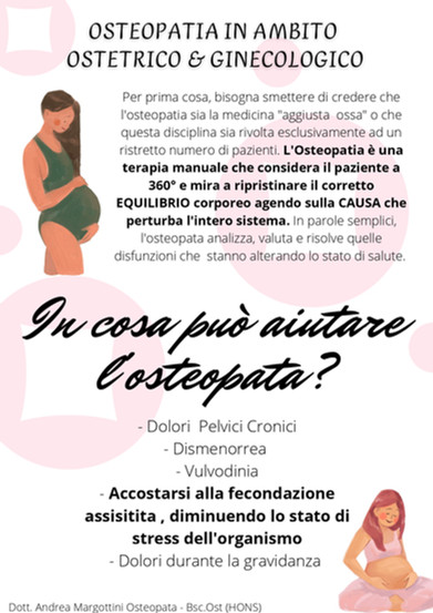 "OSTEOPATIA in ambito OSTETRICO & GINECOLOGICO"Andrea Margottini30 mar 2024Tempo di lettura: 1 minEcco un piccolo riassunto di cos'è l'osteopatia e come può agire sulla sfera ostetrica e ginecologica !!